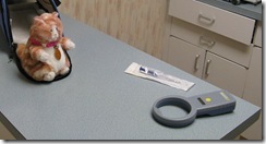 I Knew I shouldn’t have come out from under the bed for those treats! What a rotten dirty trick! Everyone at the vet’s office is very nice but still… VET!!!!! Sigh, I don’t put up 1/10th the fight Makamae does. She puts her extra claws to good use.
